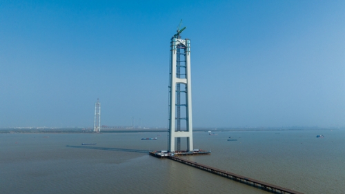 12月1日,随着南航道桥南主塔上横梁完成“云端合龙”,张靖皋长江大桥南航道桥南、北两座主塔全部实现封顶。至此,大桥南、北航道桥四座主塔主体结构全面完工,全桥建设将由下部结构转入上部结构施工新阶段。