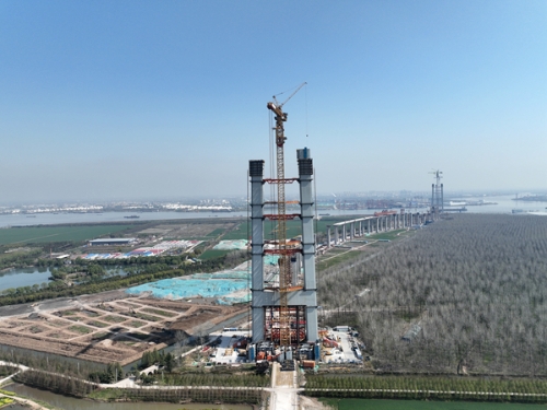4月1日,张靖皋长江大桥南航道桥北主塔T19节段钢箱吊装完成,这座在建的世界最高悬索桥南北两座主塔均突破200米大关,工程建设取得阶段性进展。