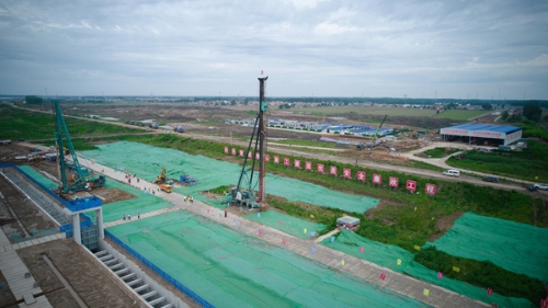 盐阜船闸主体首幅三轴水泥搅拌桩开钻 江苏港投供图