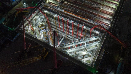 5月31日,海太长江隧道江南段接收工作井底板混凝土浇筑完成。