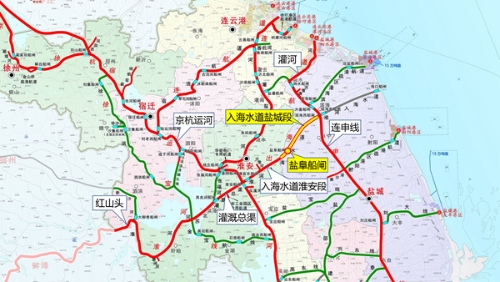 淮河入海水道二期配套通航工程盐城段是江苏省“两纵五横”干线航道网规划中的“第二横”,工程建成后,将构建连接京杭运河与连申线航道的淮河流域高效出海新通道,完善苏北高等级航道网,拓展盐城、淮安、连云港等地港口的腹地范围与联运格局,为长三角水运一体化发展注入新动能。