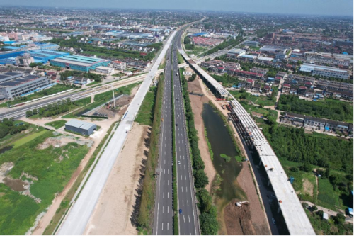 江阴靖江长江隧道由主线及南北引接线构成,其中北接线工程全长5.518公里,采用双向六车道高速公路标准建设,设计时速100公里,主线桥梁宽度达33.1米。7处涉路桥梁均采用钢板组合梁和钢箱梁架设(顶推)工艺,依次跨越多个重要路段。面对高处作业风险大、沿线交通疏导难度高、大型机械设备调度、复杂管线迁改等重重挑战,江阴靖江长江隧道建设指挥部通过动态优化施工计划、强化质量安全管控、高效落实主材进场报批等举措,确保了桥梁工程按时高质量贯通。